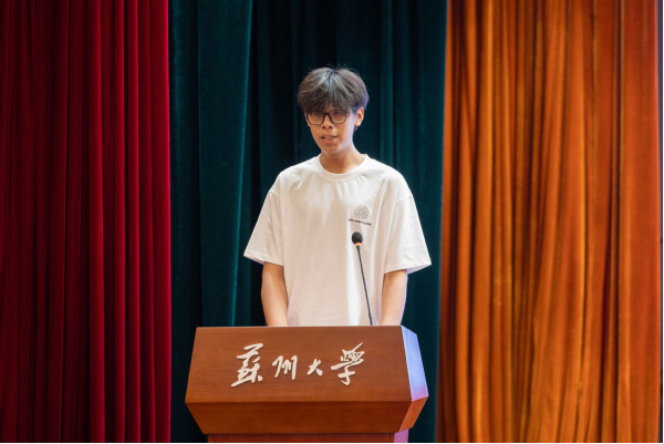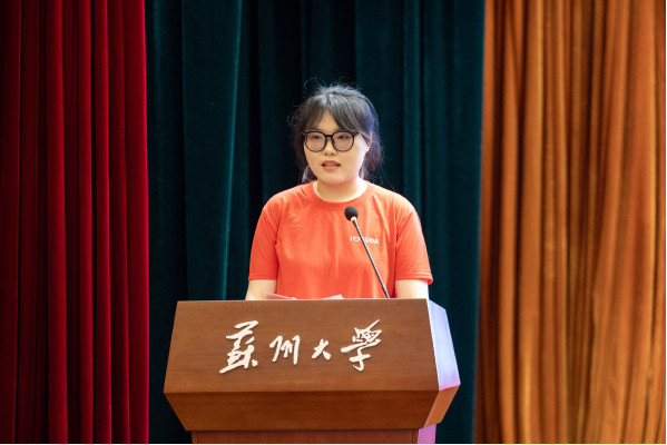 徐羅代表新生感謝學(xué)院提供的學(xué)習(xí)機(jī)會(huì),對(duì)老師們的辛勤工作表示敬意,并歡迎新同學(xué)。她表示,新生們選擇蘇州大學(xué)是因?yàn)槠鋬?yōu)秀的師資、先進(jìn)的設(shè)施、開放的學(xué)術(shù)氛圍和豐富的校園生活,期待在這里成長為具有全球競爭力的人才。