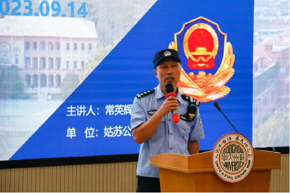 為了提高同學(xué)們的安全防范意識(shí)和避險(xiǎn)能力,提高自我保護(hù)能力,創(chuàng)造和諧安全的校園環(huán)境,國(guó)際培訓(xùn)學(xué)院于9月14日下午組織2023級(jí)新生開(kāi)展安全教育講座,平江派出所的常英輝警官為同學(xué)們科普了安全教育知識(shí)及防范應(yīng)對(duì)措施。