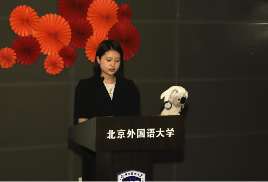 在典禮的最后環(huán)節(jié),北外國(guó)商本科生團(tuán)總支學(xué)生會(huì)國(guó)際部部長(zhǎng)田一麟同學(xué)發(fā)言,總結(jié)國(guó)際部工作,對(duì)團(tuán)總支學(xué)生會(huì)的同事,國(guó)際部成員,各位老師,以及父母表達(dá)感謝,對(duì)即將結(jié)束北外生活的廣大學(xué)子的美好祝愿。