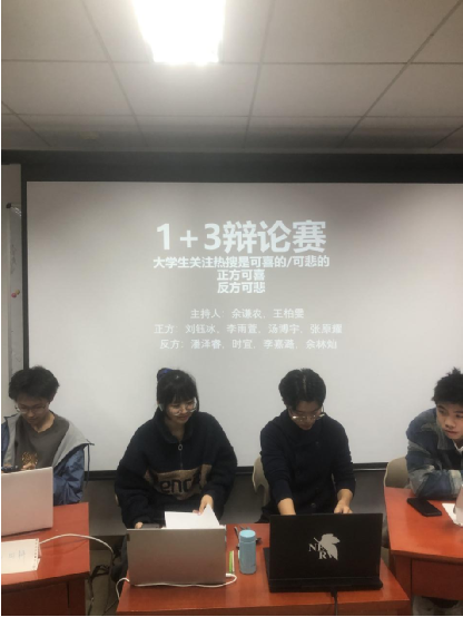 有在班級(jí)及學(xué)院活動(dòng)中做出了卓越貢獻(xiàn),他們組織發(fā)起班級(jí)辯論賽活動(dòng),增加班級(jí)活動(dòng)趣味性和凝聚力。