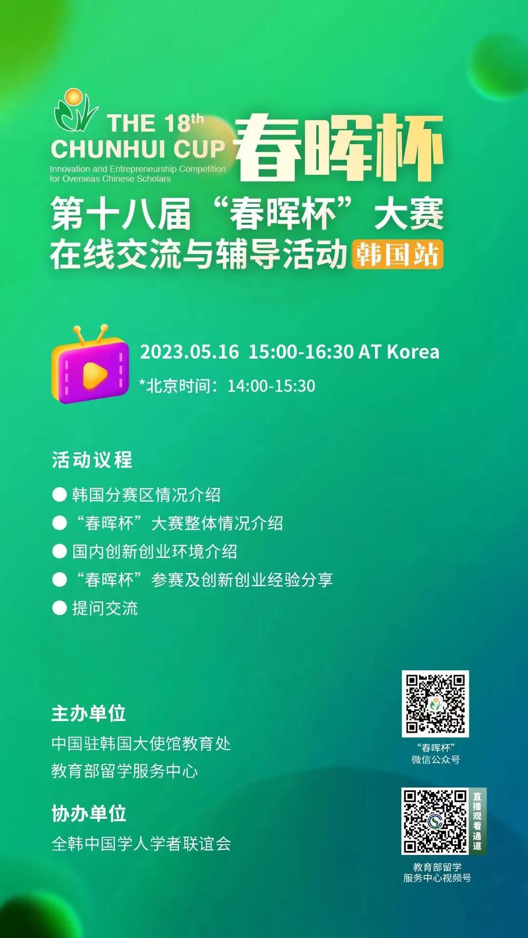 第十八屆“春暉杯”中國留學(xué)人員創(chuàng)新創(chuàng)業(yè)大賽在線交流與輔導(dǎo)活動(dòng)(韓國)
